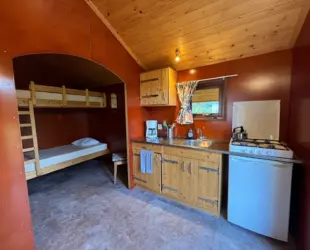 De Trekkershut Plus heeft vijf slaapplaatsen en een compleet ingerichte keuken met een koelkast. U hoeft bij deze hut dus geen eigen kookgerei en servies mee te nemen.