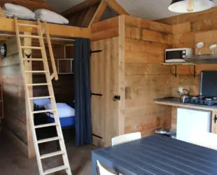 Onze gezellige trekkershut is ideaal voor een comfortabel verblijf. De hut heeft twee slaapkamers: één met twee eenpersoonsbedden en één met een stapelbed. Alle bedden zijn al voorzien van kussens en dekbedden, zodat je zelf niets hoeft mee te nemen.